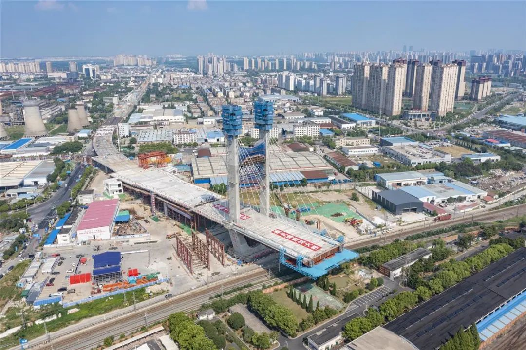 8月3日,世界首座齿轮齿轨式转体斜拉桥,襄北编组站大桥主墩顺利完成转体。下午2点20分,在襄北编组站大桥建设现场,6台电动滚轮小车驱动齿轮进行转动,重达3.2万吨的桥墩,开始顺时针转向,仅用了80分钟,桥墩就顺利完成了77度转体。